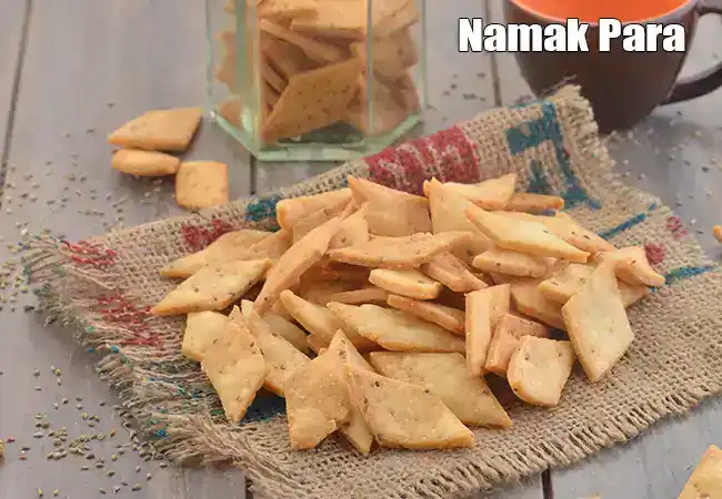Diamond-shaped maida crisps flavored with ajwain, fried golden. Simple yet flavorful tea snack. Variations include sweet shakarpara. Easy to make in bulk.