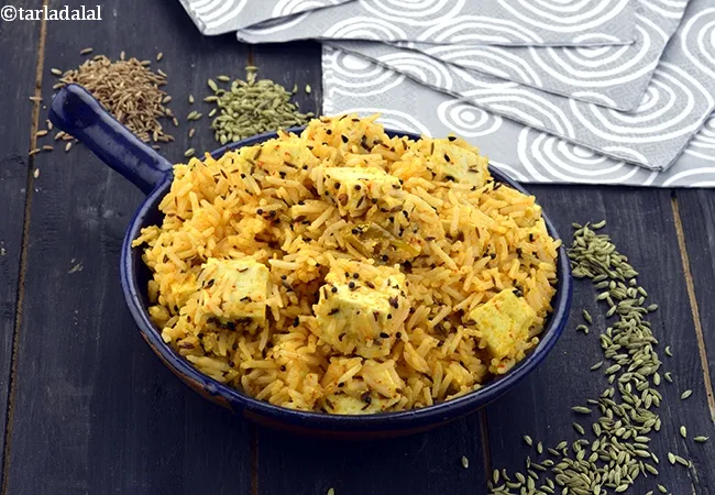 Achari Paneer Pulao recipe is paneer, marinated with achari spices like fennel and nigella is tossed together with rice, which is cooked to perfection with typical spices like cinnamon, cloves, cardamom and caraway. This gives the feeling of having a nice pulao with a mild pickle, but it comes in a single package, making it convenient to serve or pack.