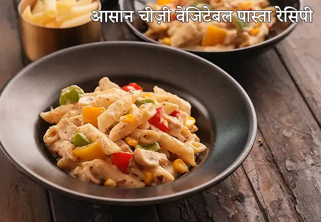 ईज़ी चीज़ी वेजिटेबल पास्ता एक क्रीमी और स्वादिष्ट वन डिश मील है, जो पास्ता, मिक्स सब्ज़ियों और भरपूर चीज़ से बनाया जाता है। सब्ज़ियाँ इसमें रंग, क्रंच और पोषण जोड़ती हैं, जबकि चीज़ इसे रिच और कंफर्टिंग स्वाद देता है। इसका हल्का फ्लेवर और क्रीमी टेक्सचर बच्चों को बहुत पसंद आता है। यह पास्ता जल्दी पक जाता है और व्यस्त शामों के लिए एकदम सही रहता है। आप इसमें शिमला मिर्च, कॉर्न, गाजर और बीन्स जैसी कोई भी सब्ज़ी डाल सकते हैं। यह गरम और ताज़ा सर्व करने पर सबसे अच्छा लगता है। पेट भरने वाले स्नैक या डिनर के लिए यह एक बेहतरीन विकल्प है।