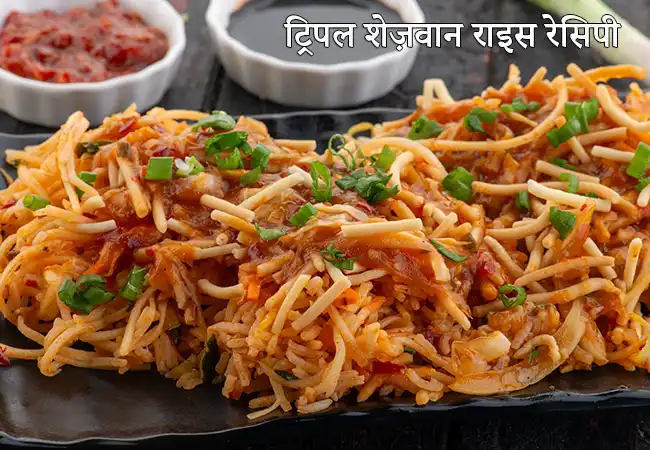 ट्रिपल सेज़वान राइस एक पॉपुलर स्ट्रीट-स्टाइल डिश है जिसमें फ्राइड राइस, नूडल्स और स्पाइसी सेज़वान सॉस एक साथ मिलाए जाते हैं। इसका स्वाद बेहद बोल्ड होता है, इसलिए यह स्पाइसी फूड लवर्स के लिए परफेक्ट है। यह रेसिपी एक कम्प्लीट मील जैसी लगती है क्योंकि इसमें चावल और नूडल्स दोनों होते हैं। सेज़वान सॉस इसमें तीखा और हल्का खट्टा स्वाद जोड़ता है, जिससे यह और भी मज़ेदार बनती है। इसका असली मज़ा तब आता है जब इसे गरमागरम सर्व किया जाए। आप इसमें ज्यादा सब्ज़ियाँ या पनीर डालकर इसे और भरपूर बना सकते हैं। पार्टी मील्स और रेस्टोरेंट-स्टाइल क्रेविंग्स के लिए यह टॉप चॉइस है।