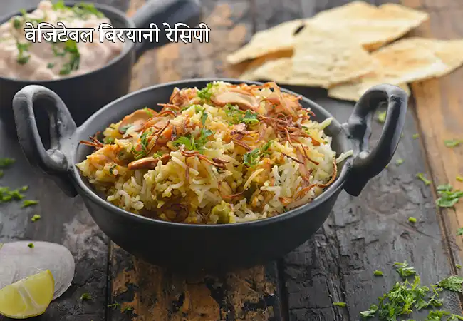वेजिटेबल बिरयानी एक स्वादिष्ट वन पॉट राइस डिश है जो खुशबूदार बासमती चावल, मिक्स सब्ज़ियों और मसालों से बनती है। इसमें हर बाइट में खुशबू, स्वाद और टेक्सचर का परफेक्ट बैलेंस मिलता है। लेयरिंग स्टाइल में पकाने की वजह से इसका स्वाद बिल्कुल रेस्टोरेंट जैसी फील देता है। यह लंच या डिनर के लिए एक शानदार और पेट भरने वाला भोजन है। वेजिटेबल बिरयानी रायता, सलाद या पापड़ के साथ सबसे ज्यादा अच्छी लगती है। आप इसमें पनीर भी डाल सकते हैं जिससे यह और ज्यादा रिच और प्रोटीन-युक्त बन जाती है। यह फैमिली मील और खास मौके दोनों के लिए बढ़िया विकल्प है।