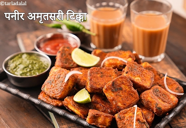 पनीर अमृतसरी टिक्का अजवाइन, अन्य मसालेदार सामग्री और रसीले पनीर को मिश्रण में मिलाकर फ्राई करके बनाया जाता है।