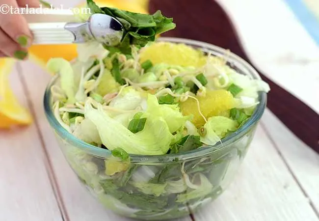Citrus Salads are also quite nourishing and pleasing to most palates. We have combined the most famous citrus fruits orange and sweet lime with veggies to create healthy options like Lettuce Orange and Spinach Salad (41 calories) and Sweet Lime and Pepper Salad (44 calories).