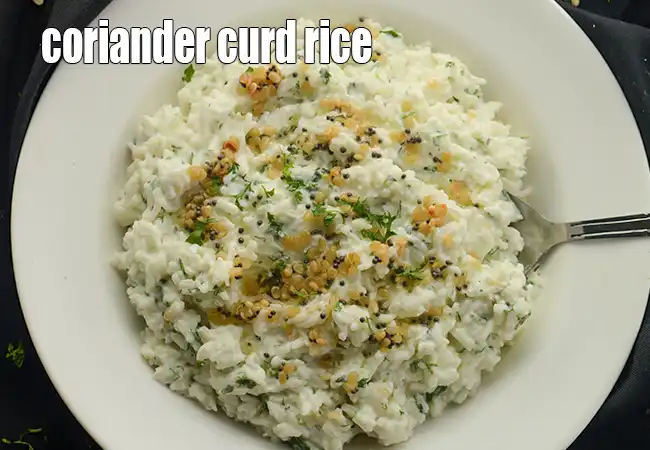coriander curd rice | South Indian coriander curd rice | coriander dahi chawal |
