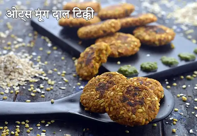 ओट्स मूंग दाल टिक्की बेक्ड/शैलो फ्राइड प्रोटीन रिच टिक्की ओट्स और मूंग दाल से — फ्राइड कटलेट का हेल्दी विकल्प (~१५ मिनट)। हिंदी लिंक: https://www.tarladalal.com/oats-moong-dal-tikki-hindi-35288r