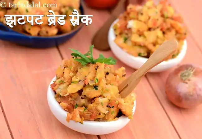 - क्विक वेज ब्रेड स्नैक (मसाला ब्रेड) प्याज, टमाटर, केचप और मसालों के साथ ब्रेड का उपमा स्टाइल — अल्ट्रा-फास्ट कंफर्ट स्नैक। हिंदी लिंक: https://www.tarladalal.com/quick-veg-bread-snack-masala-bread-hindi-1505r