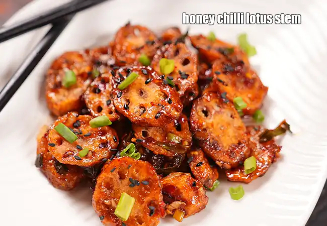 honey chilli lotus stem recipe | crispy lotus stem in honey chilli sauce | oriental crispy lotus stem |