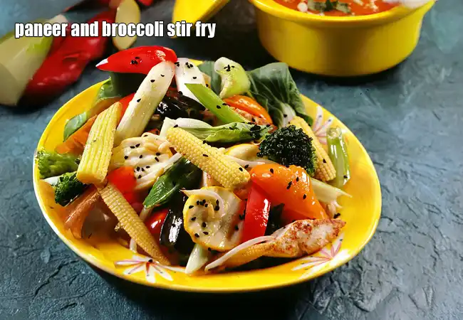 paneer and broccoli stir fry recipe | paneer vegetable stir fry | healthy Indian cottage cheese stir fry with spring onions and sprouts |