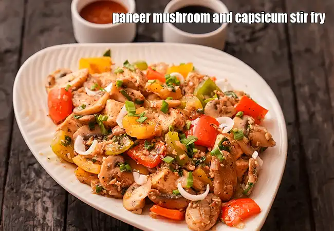 paneer mushroom and capsicum stir fry recipe | healthy garlic mushroom paneer stir fry | paneer capsicum stir fry |