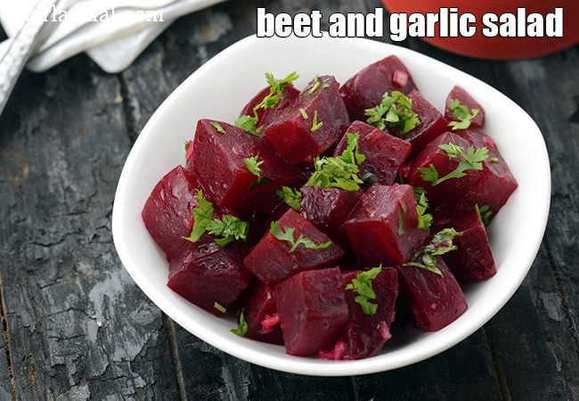 beet and garlic salad recipe | healthy beetroot garlic salad | quick Indian beetroot salad | fibre rich |