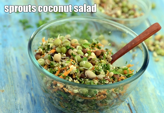sprouts coconut salad recipe | sprouts salad with coconut | healthy mixed sprouts salad with coconut