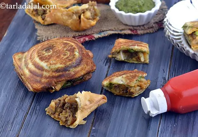 The toasted samosa sandwich and Samosa Chip Sandwich recipe are other exciting Indian sandwiches made with an assortment of ingredients like samosa, peppy chutneys, crunchy veggies and crispy chips between bread slices layered with butter and green chutney.
