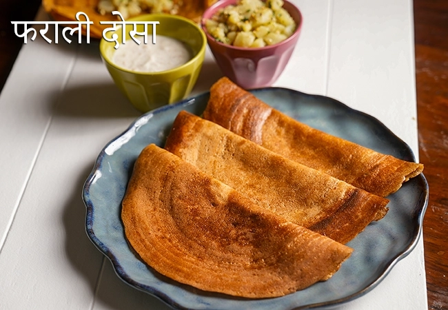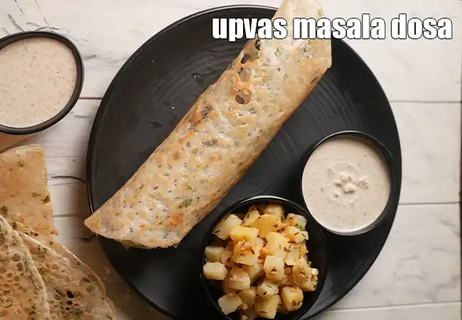 पारंपरिक डोसे का व्रत-अनुकूल रूप है, जिसे बिना चावल और दाल के बनाया जाता है। इसे साबूदाना, राजगिरा या आलू के घोल से तैयार किया जाता है। यह बाहर से कुरकुरा और अंदर से नरम होता है। इसमें हल्के मसालों वाली आलू की भरावन डाली जाती है। यह उपवास के दौरान चंद्र दर्शन के बाद खाने के लिए उपयुक्त होता है।