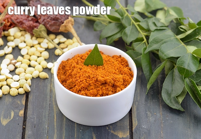 curry leaves powder | curry leaves chutney powder | South-Indian curry leaves chutney powder | karibevu chutney powder … More..