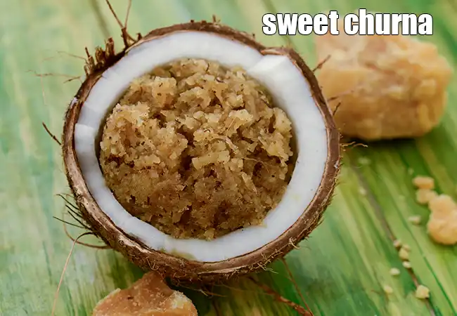 Churna, coconut and jaggery, perked up with cardamom, is an all-time favourite in Konkan cuisine, especially as an accompaniment for Neer Dosa.