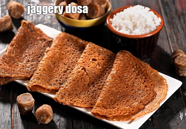 jaggery dosa recipe | vella dosa | instant wheat flour jaggery dosa | Indian style rice jaggery dosa | jaggery dosa is a sweet South Indian style dosa which can be served as a Breakfast or Evening Tea Snack.