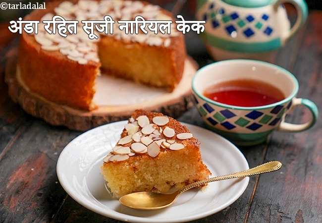 अंडारहित सूजी और नारियल का केक - Eggless Semolina and Coconut Cake {ad8}
