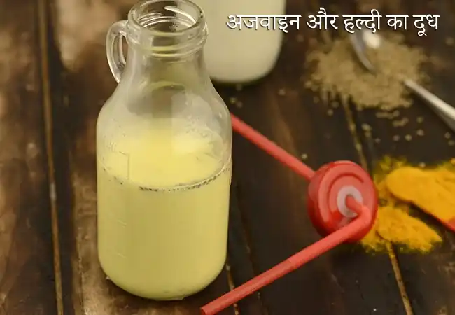 हल्दी में मौजूद कर्क्यूमिन बैक्टीरिया से लड़ने में मदद करता है, जबकि अजवाइन में मौजूद थाइमोल बैक्टीरिया की ग्रोथ को रोकता है और पाचन में भी मदद करता है। इसे 2–3 दिन तक दिन में दो बार गर्म पीने से अच्छा फायदा हो सकता है।