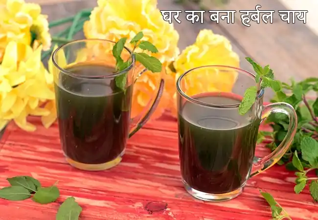 यह होममेड हर्बल टी जिसे काढ़ा भी कहा जाता है, एक प्राकृतिक घरेलू ड्रिंक है। इसे बनाने के लिए तुलसी, पुदीना, और अदरक को थोड़े से पानी के साथ पीसकर एक मोटा पेस्ट बनाते हैं। फिर इसे 1½ कप पानी में 5 से 7 मिनट तक उबालते हैं, छानते हैं और स्वाद के लिए शहद मिलाते हैं।
