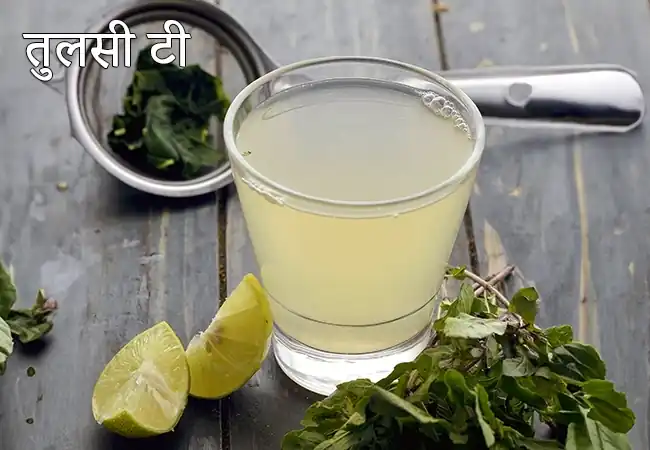 तुलसी चाय तुलसी के पत्तों (इंडियन बेसिल) और नींबू के रस से बनाई जाती है। पत्तों को पानी में 10 मिनट तक पकाकर छाना जाता है, फिर उसमें नींबू का रस मिलाकर एक आरामदायक और ताज़गी देने वाली हर्बल चाय तैयार की जाती है। यह गले की खराश में आराम देने वाली चाय मानी जाती है, क्योंकि तुलसी में एंटी-वायरल और सूदिंग गुण होते हैं।