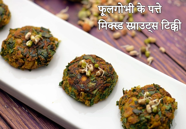 फूलगोभी के पत्ते मिक्स्ड स्प्राउट्स टिक्की रेसिपी | कॉलिफ्लॉवर ग्रीन्स और स्प्राउट्स टिक्की | हेल्दी कॉलिफ्लॉवर ग्रीन्स की टिक्की | Cauliflower Greens Mixed Sprouts Tikki
