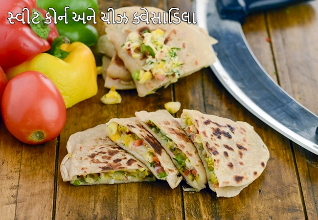 મકાઈ અને ચીઝ ક્વેસાડિલા | જૈન ક્વેસાડિલા | મકાઈ અને ચીઝ ટોર્ટિલા પોકેટ્સ | રંગબેરંગી શાકભાજી | Sweet Corn and Cheese Quesadillas recipe. ચીઝ અને સ્વાદિષ્ટ મસાલા સાથે મકાઈ અને ચીઝ ફ્લેટબ્રેડ્સ.