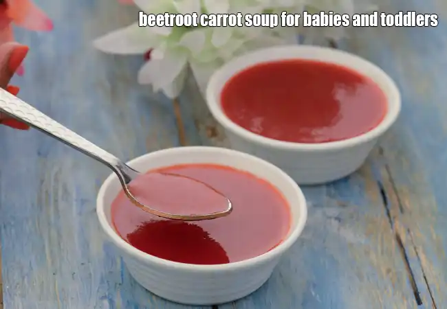 beetroot carrot soup for babies and toddlers | carrot beetroot soup for babies | carrot beetroot soup for kids | beetroot and carrot soup for babies |