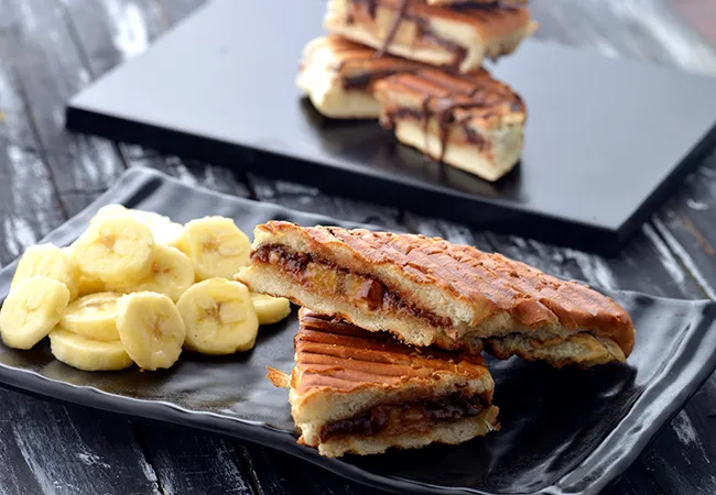 3. Chocolate Peanut Butter Banana Panini fabulous version combines the nutty notes of Nutella and peanut butter with the pleasant fruity taste of bananas, to give your taste buds a top-class treat.
