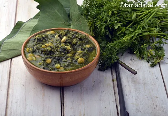 The authentice Maharashtrian Paatal Bhaji, is a nourishing daily fare which can be enjoyed by people of all ages. Made with chopped colocasia leaves, chana dal and a cocont paste, it is further perked up with the right balance of imli pulp and jaggery. This iron rich recipe is surely worth a try!