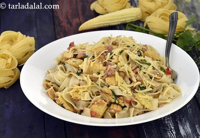 2. Fettuccine with Baby Corn and Walnuts simply mouth-watering, that’s what this creation is! So tasty that you can’t believe it takes just minutes to cook it up.