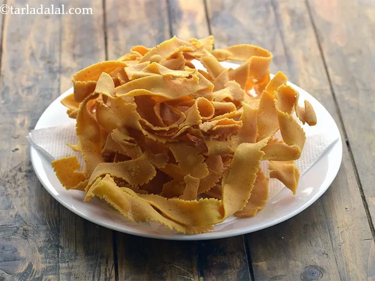 ribbon sev | ribbon pakoda | ribbon murukku | ola pakoda | ottu pakoda in south india Video by Tarla Dalal