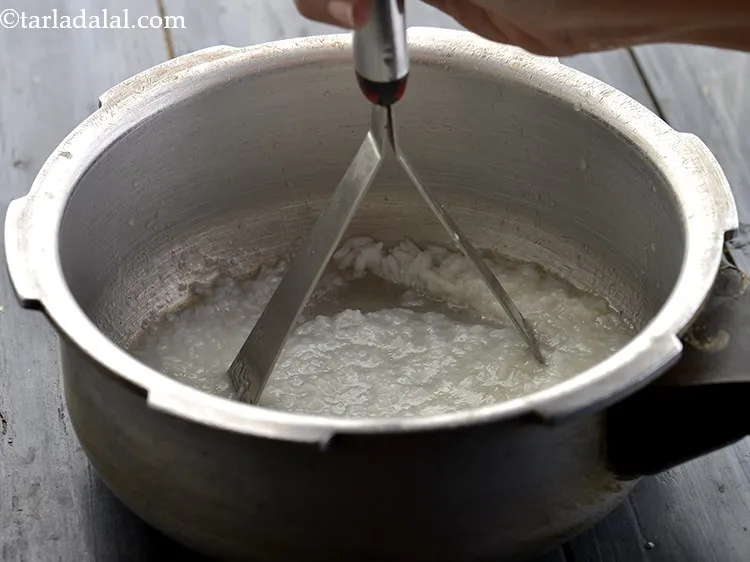 - To make rice mash for babies, combine the rice and ¾ cup of water in a pressure cooker, mix well and pressure cook for 3 to 4 whistles. The rice should be completely cooked and soft.