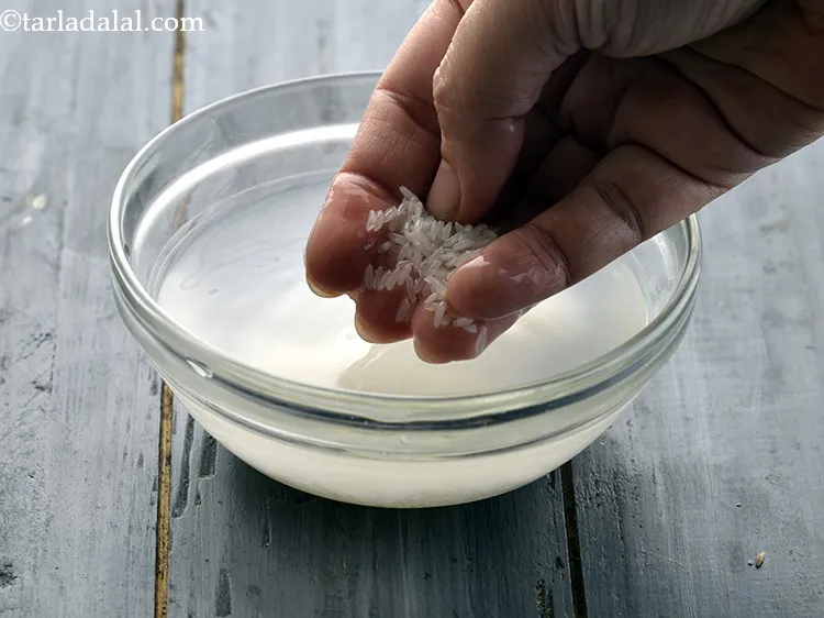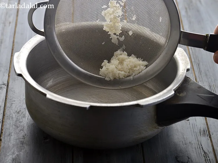 पानी को अच्छी तरह से छान कर निकाल दें। धुले हुए चावल को एक तरफ रख दें।