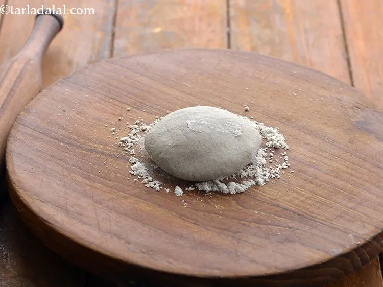 - Roll a portion of the dough into a 125 mm. (5") diameter circle, using a little bajra flour for rolling.