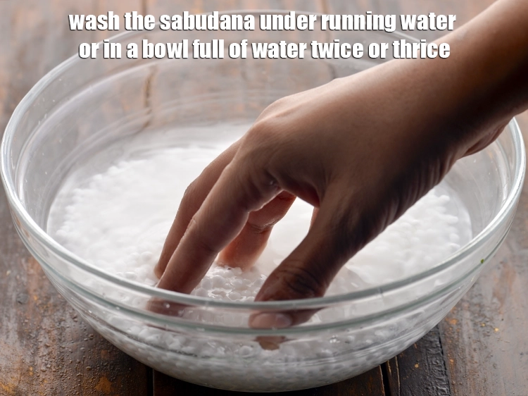 2. साबूदाना को बहते पानी के नीचे या पानी से भरे कटोरे में दो या तीन बार धो लें।