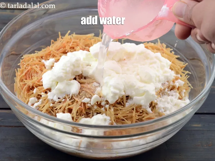 - Add the curds, 1½ cups of water and salt and mix well to make a batter of dropping consistency. Keep aside.