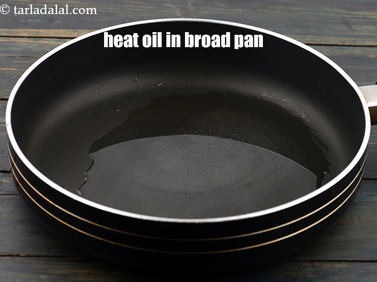 To make semolina and vermicelli idli recipe | Indian rava semiya idli | instant vermicelli idli | instant breakfast recipe |, heat ½ tbsp of oil in a broad non-stick pan.
