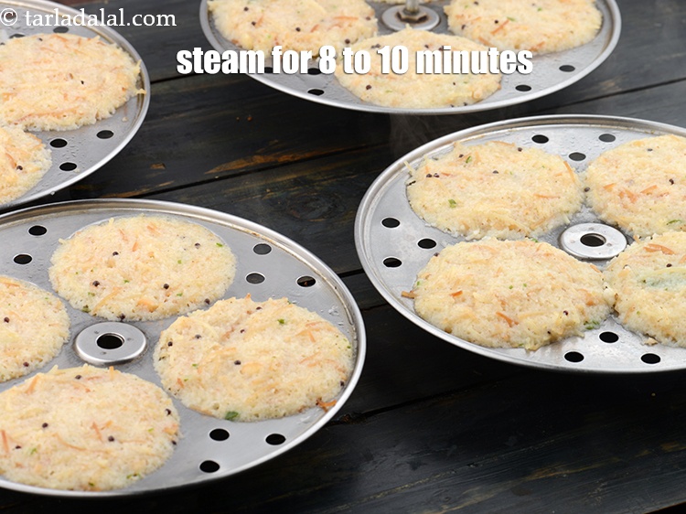 Steam in a steamer for 8 to 10 minutes or till the idlis are cooked