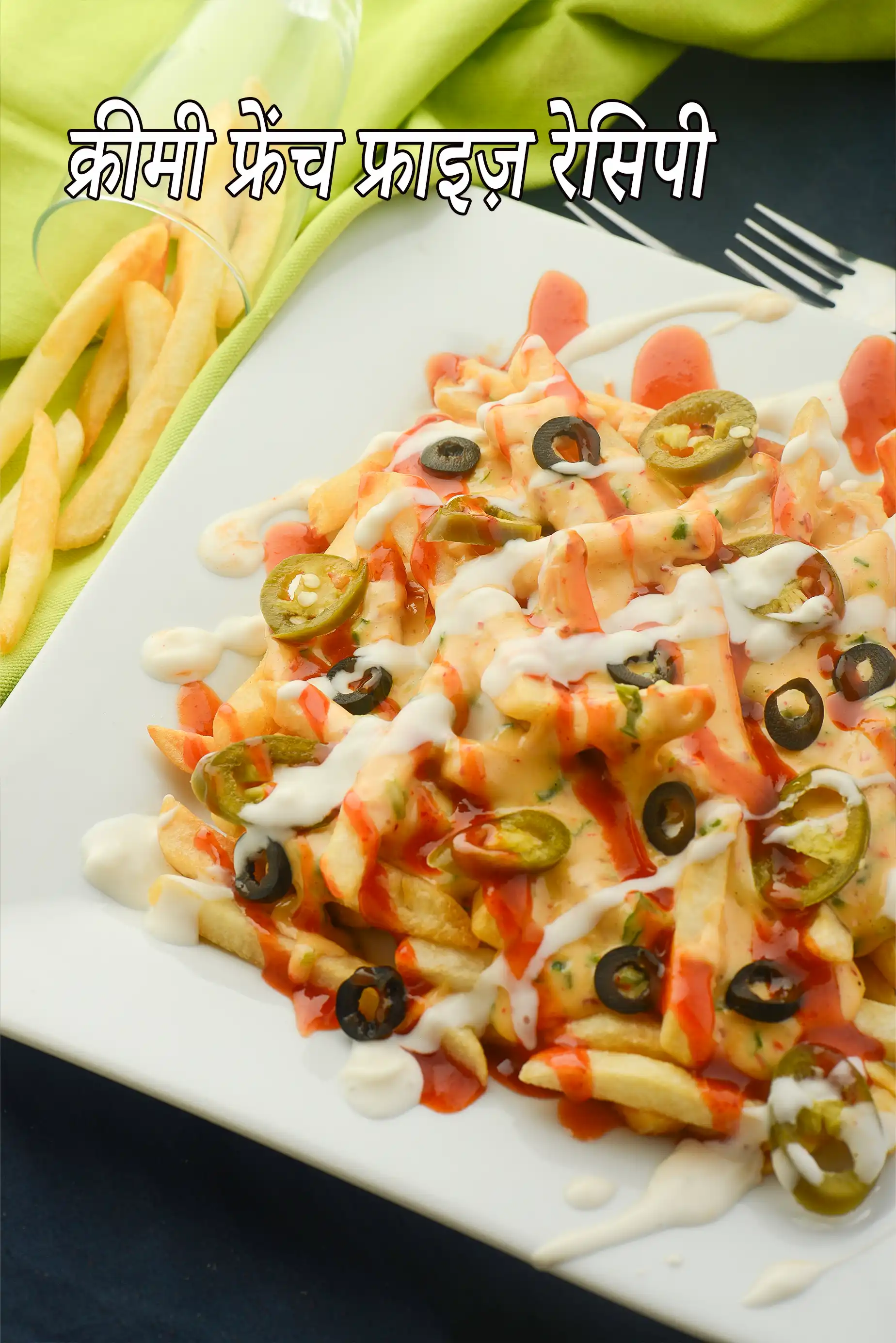 क्रीमी फ्रेंच फ्राइज़ रेसिपी | क्रीमी वेजिटेबल फ्रेंच फ्राइज़ | मसालेदार क्रीमी फ्रेंच फ्राइज़ | क्रिस्पी क्रीमी फ्रेंच फ्राइज़ | spicy creamy french fries in hindi | with 21 amazing images.