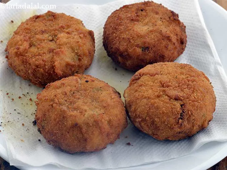 - Heat the oil in a kadhai and deep-fry each cutlet till it turns golden brown in colour from both the sides. Drain on absorbent paper and keep aside.