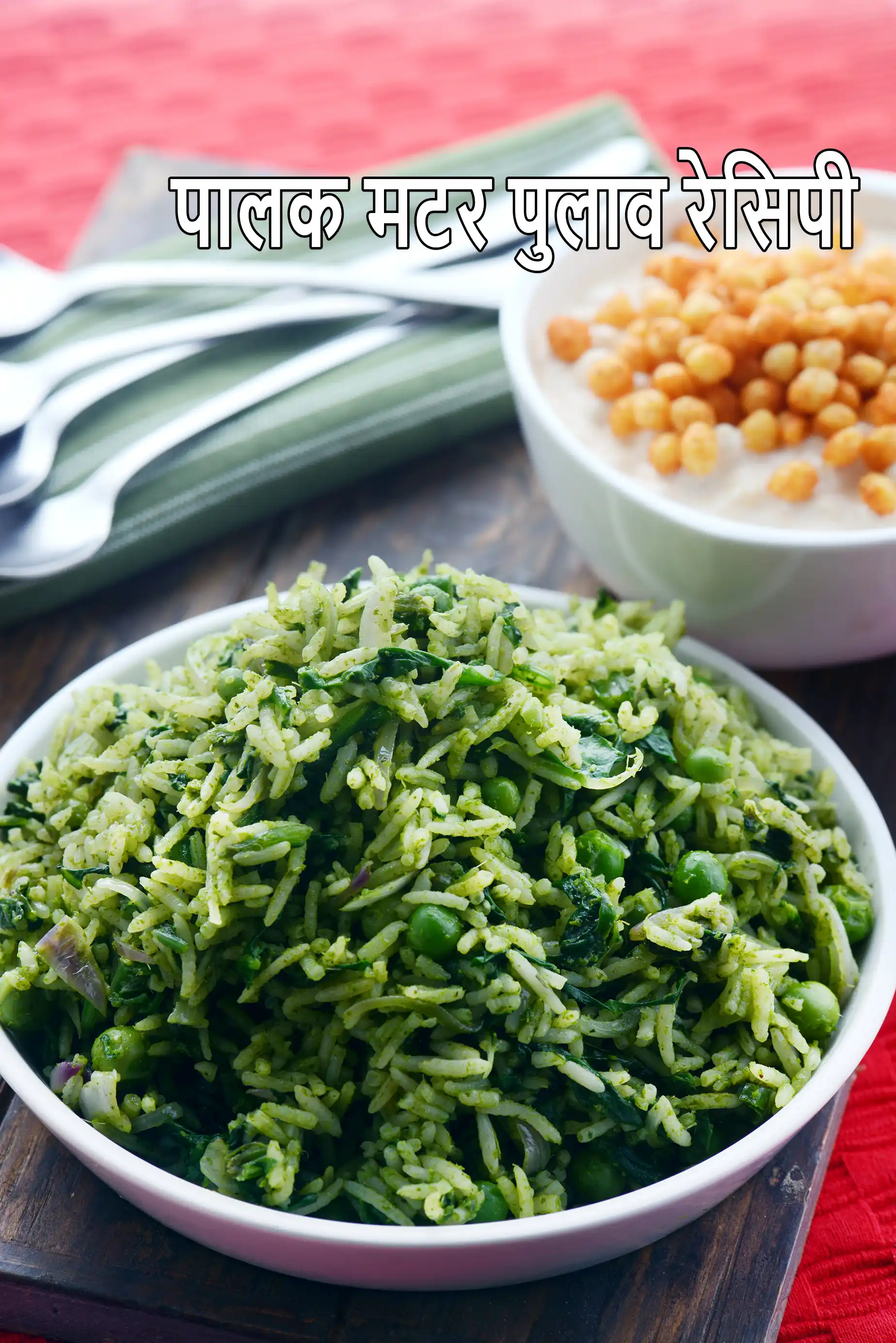 पालक मटर पुलाव रेसिपी | पालक मटर पुलाओ | मटर पालक पुलाव | पालक मटर चावल |