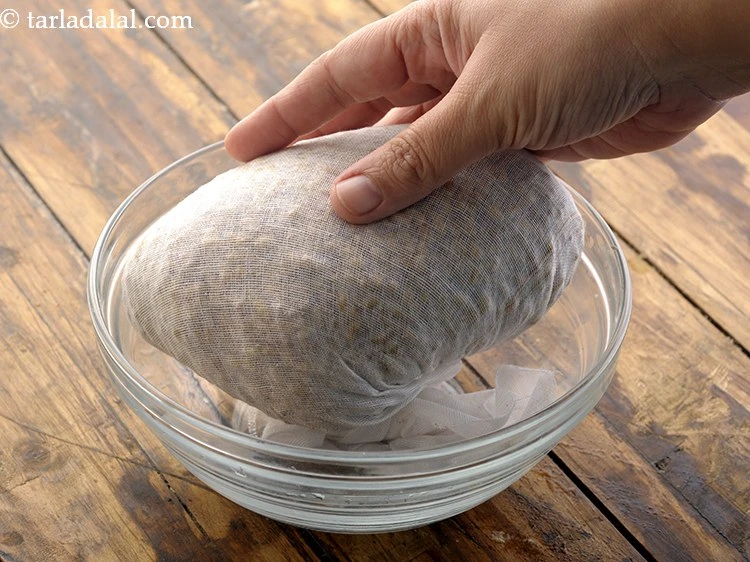- તેને પાણીથી ભીનું કરો અને ૧૦ થી ૧૨ કલાક માટે ફણગાવવા માટે ગરમ જગ્યાએ બાજુ પર રાખો.