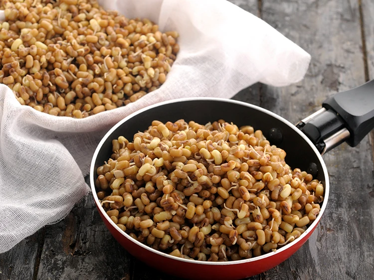 अंकुरित और उबली हुई मटकी कुछ इस तरह दिखती है।