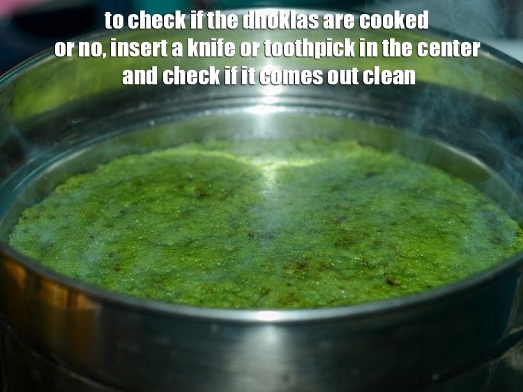 સ્ટીમરમાં ૧૦ થી ૧૨ મિનિટ સુધી અથવા ઢોકળા રાંધાય ત્યાં સુધી બાફવા દો.