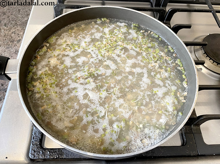 Always add little salt while boiling sprouts as they absorb salt well at this stage.