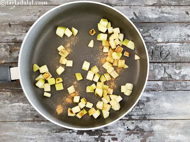 मध्यम आंच पर ३ से ४ मिनट तक या सेब के नरम होने तक पकाएं।