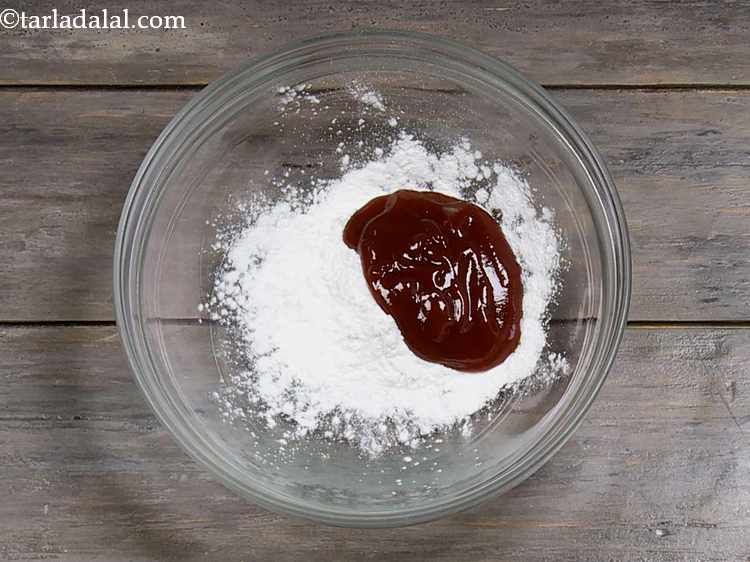 Step 1 – In a small bowl, take cornflour. Cornflour helps in thickening the sauce quickly.