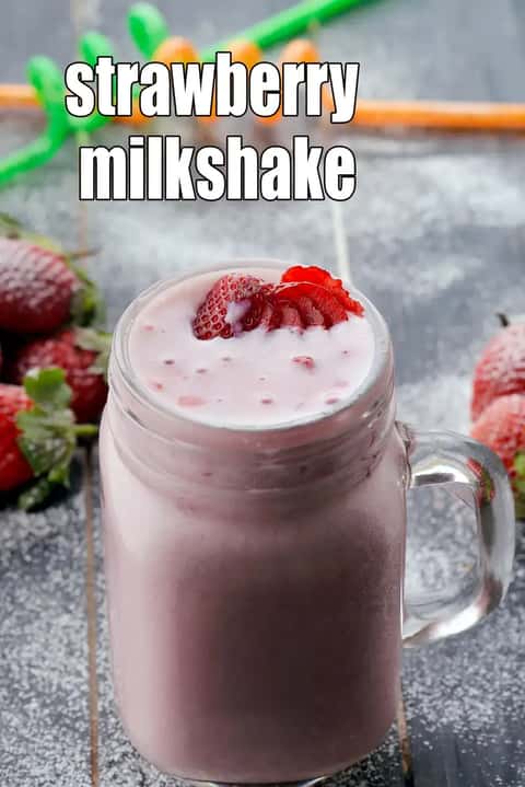 strawberry milkshake recipe | Indian style strawberry milkshake without ice cream | yummy strawberry milkshake for kids | fresh strawberry milkshake with milk | with 7 amazing images.