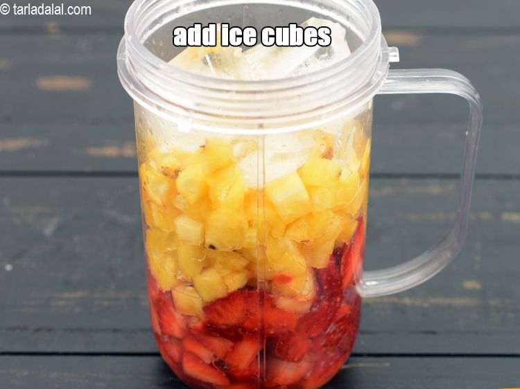 Tips to make strawberry pineapple juice: 1. If your strawberries are sour in taste, you can add 2 tsp of sugar and blend it. 2. Adding ice cubes makes the blending easy also enhances the flavours of the juice.