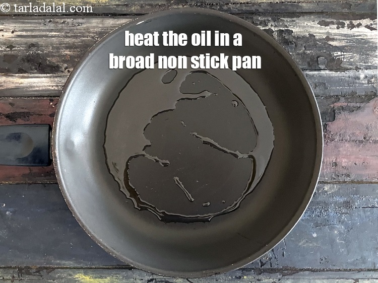 - To make tomato garlic chutney, heat the oil in a broad non-stick pan, add the onions and sauté on a medium flame for 1 to 2 minutes.